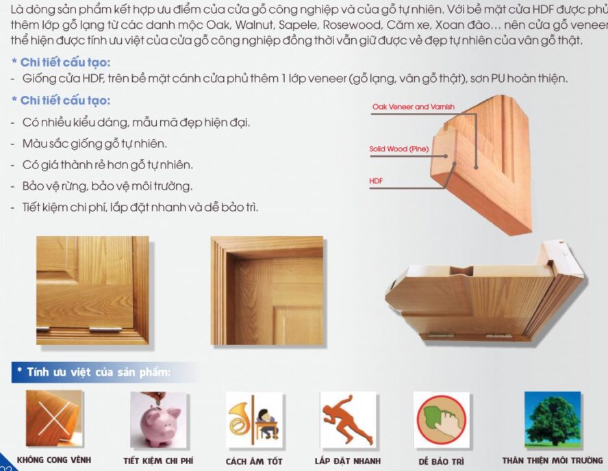 Cửa gỗ HDF veneer hay còn gọi là cửa công nghiệp phủ veneer được thiết kế với kiểu dáng sang trọng với vân gỗ tự nhiên nhưng vẫn đảm bảo tính kinh tế.
